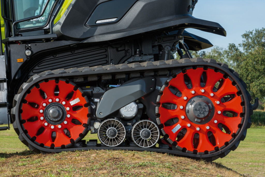 Napęd przenoszony jest w oparciu o napięcie pasa gąsienicy za pomocą specjalnie zaprojektowanych samoczyszczących klocków gumowych co dodatkowo wpływa na zmniejszenie temperatury pasa gąsienicy szczególnie podczas transportu drogowego. Koło napędowe zaprojektowano tak, aby maksymalizować kontakt z pasem gąsienicy. Samoczyszczące się koło napędowe i niezależnie zawieszone koła to gwarancja maksymalnej przyczepności i równomiernego rozkładu nacisku na podłoże w każdych warunkach. CLAAS AXION 900 TERRA TRAC prowadzi się jak tradycyjny ciągnik czterokołowy.