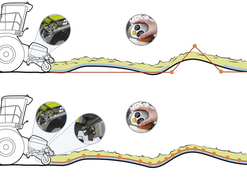 Na potrzeby czystego podbierania materiału dostępny jest sprawdzony system CONTOUR. Nowością jest funkcja aktywnego, sterowanego potencjometrem prowadzenia wysokościowego. System ACTIVE CONTOUR działa szybko, zapewniając zawsze odpowiednią odległość zębów podbieracza od podłoża.