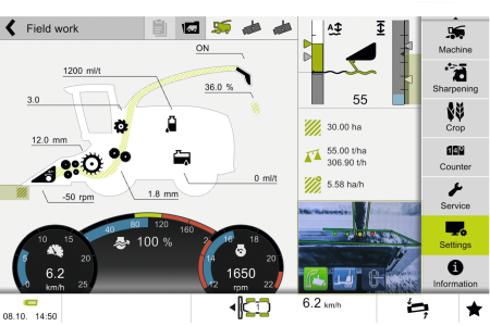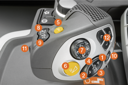 CEBIS z ekranem dotykowym umożliwia szybki dostęp do wszystkich funkcji maszyny. Najważniejsze z nich można zmieniać również bezpośrednio przełącznikiem w podłokietniku. Czy to w przypadku niespokojnej jazdy po polu, czy braku doświadczenia u operatora – mamy gwarancję precyzyjnej obsługi. Zależnie od preferencji operator JAGUAR może dokonywać ustawień i obsługiwać maszynę na cztery sposoby.