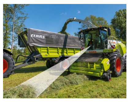 CAM PILOT przejmuje kierowanie JAGUAR w kombinacji z podbieraczem PICK UP. Pokos jest rozpoznawany trójwymiarowo za pomocą kamery z dwoma soczewkami. W przypadku odchyleń kształtu i kierunku odpowiednie sygnały są przekazywane do układu kierowniczego. Oś kierująca reaguje na polecenia kierowania. Operator jest odciążony aż do prędkości 15 km/h.