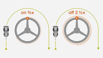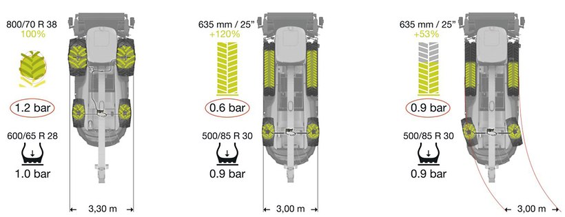 Maszyna wymaga pięciu obrotów kierownicą, aby wykonać skręt z jednej strony na drugą. Wielu operatorów wolałoby wkładać mniej wysiłku w wykonywanie nawrotów na krańcach pola. Dzięki kierowaniu dynamicznemu potrzeba zaledwie ⅔ obrotu kierownicy do osiągnięcia pełnego kąta skrętu z jazdy na wprost z prędkością poniżej 10 km/h. Intensywność obrotów kierownicy ustawa się indywidualnie w CEBIS. W ten sposób ustawień osobistych można dokonywać zarówno dla pozycji roboczej przyrządu, jak i poza nią.
