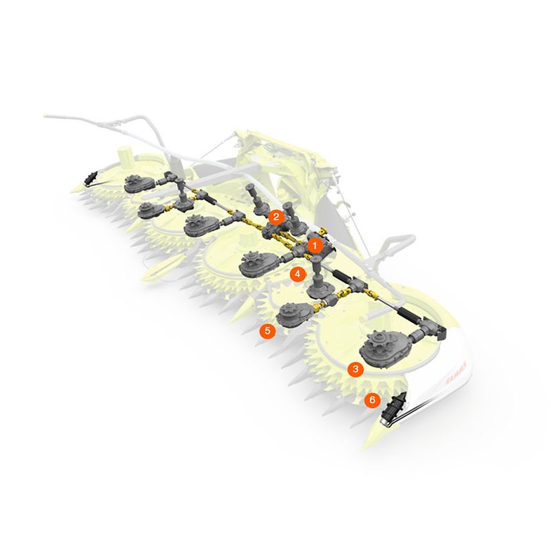Niezwykle skuteczny układ napędowy CLAAS przekonuje prostotą. Zespoły tnące są napędzane pasem Powerband bezpośrednio z wału korbowego silnika.