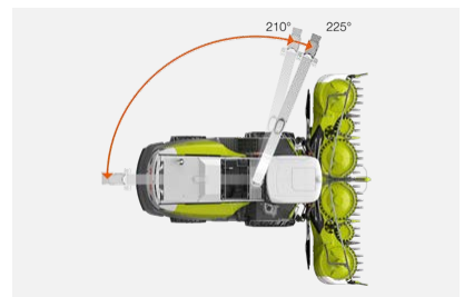 Dzięki zoptymalizowanej obsłudze tunelu można wygodnie sterować wyrzutem. Duży kąt obrotu wynoszący nawet 225° zapewnia optymalną widoczność procesu wyrzutu. Podczas obracania tunelu wyrzutowego jego końcówka jest sterowana automatycznie tak, aby wyrzut odbywał się równolegle do kierunku jazdy. Dwie zaprogramowane na stałe pozycje tunelu ułatwiają jego obracanie na końcach pola, lub gdy możliwy jest zbiór tylko z jednej strony pola. Wystarczy naciśnięcie przycisku, aby automatycznie przemieścić tunel do pozycji parkowania