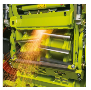 Również przy zmniejszającej się grubości warstw, walec zgniatania wstępnego działa na cały pakiet paszy zawsze z takim samym ciśnieniem, zapewniając niezmiennie wysoką jakość rozdrabniania.