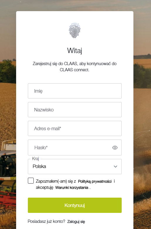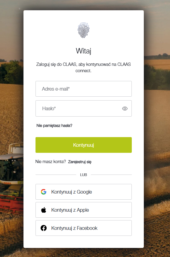 1. Wejdź na stronę CLAAS connect (poniżej link)