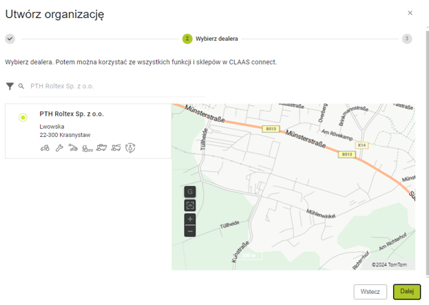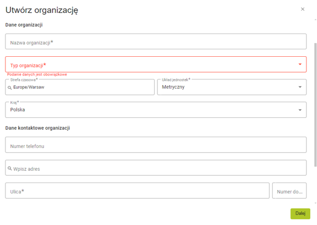 8. Załóż organizację i uzupełnij swoje dane lub wybierz drugą opcję do przeniesienia danych i maszyn z konta TELEMATICS.