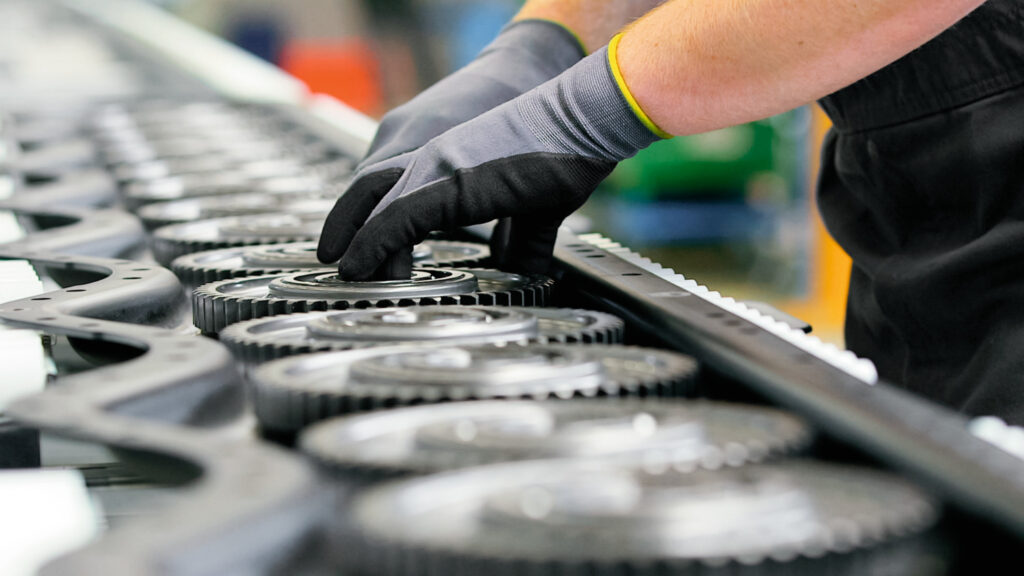 Dzięki specjalnemu falistemu kształtowi łoża kosiarki, które jest wytłoczone z jednego elementu, stali, duże zębniki napędu dysków koszących są zamontowane szczególnie daleko z przodu, co umożliwia największe możliwe zazębienie, z kilkoma zębami w dwóch punktach każdy. Równomierny rozstaw dysków zapewnia również jednolite cięcie.