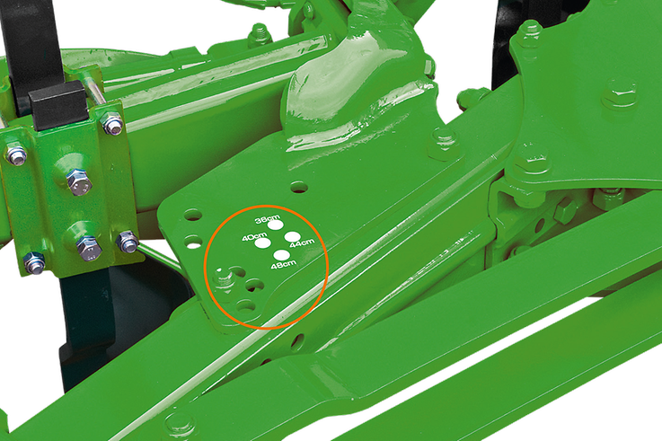 - Proste ustawianie z automatyczną regulacją pierwszego korpusu, punktu ciągu i akcesoriów przy przestawianiu szerokości roboczej – ręczna korekta nie jest wymagana