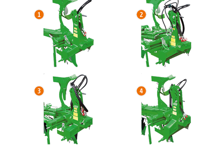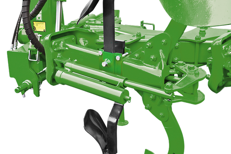 Opcjonalnie dostępne jest dopasowanie szerokości roboczej pierwszego korpusu bezpośrednio z kabiny ciągnika za pomocą siłownika hydraulicznego podwójnego działania. Zapewnia to wysoki komfort regulacji, szczególnie na zboczach, na silnie zróżnicowanych glebach lub przy częstych zmianach ciągników.