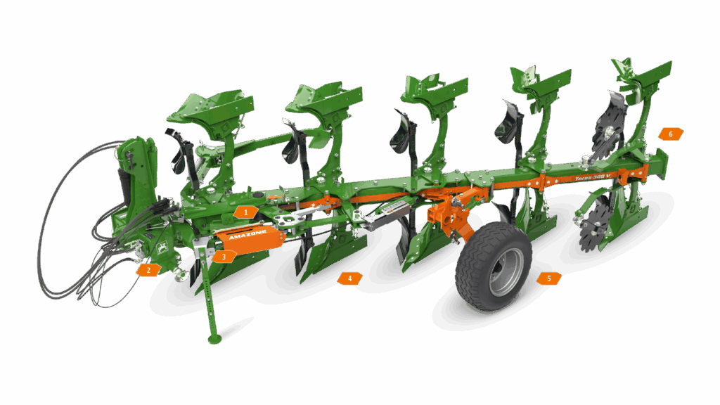 Pług obrotowy Teres marki AMAZONE przeznaczony do odwrotki charakteryzuje się szczególną odpornością mechaniczną, procesem hartowania ©plus i łatwiejszym uciągiem. Wyposażenie w korpusy pługa SpeedBlade pozwala osiągnąć wysokie prędkości robocze nawet przy 5 i 6 rzędach. A mimo to: Minimalne zużycie dzięki opatentowanym, dużym piersiom odkładnicy zapewnia długą żywotność i ekonomiczną pracę.