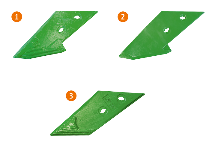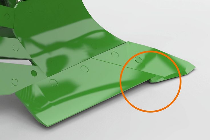 Dzięki opatentowanej powiększonej przedniej części odkładnicy wystarczy wymienić jej pierś. Pozwala to uniknąć uciążliwej i kosztownej wymiany całej odkładnicy.