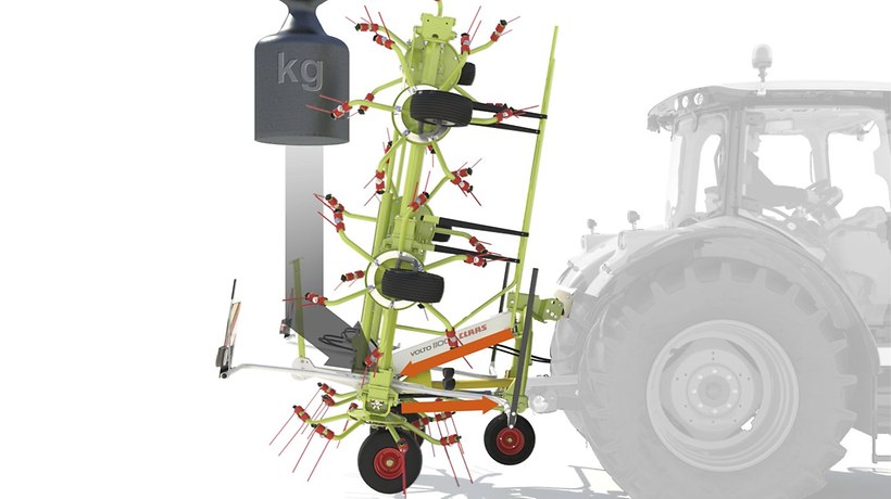 Aby jazda za ciągnikiem była spokojna VOLTO 1100 został wyposażony w hydrauliczne i bezobsługowe stabilizatory CLAAS. Centruje ona maszynę podczas podnoszenia oraz po jeździe na zakrętach i zapobiega wybieganiu na zboczu.