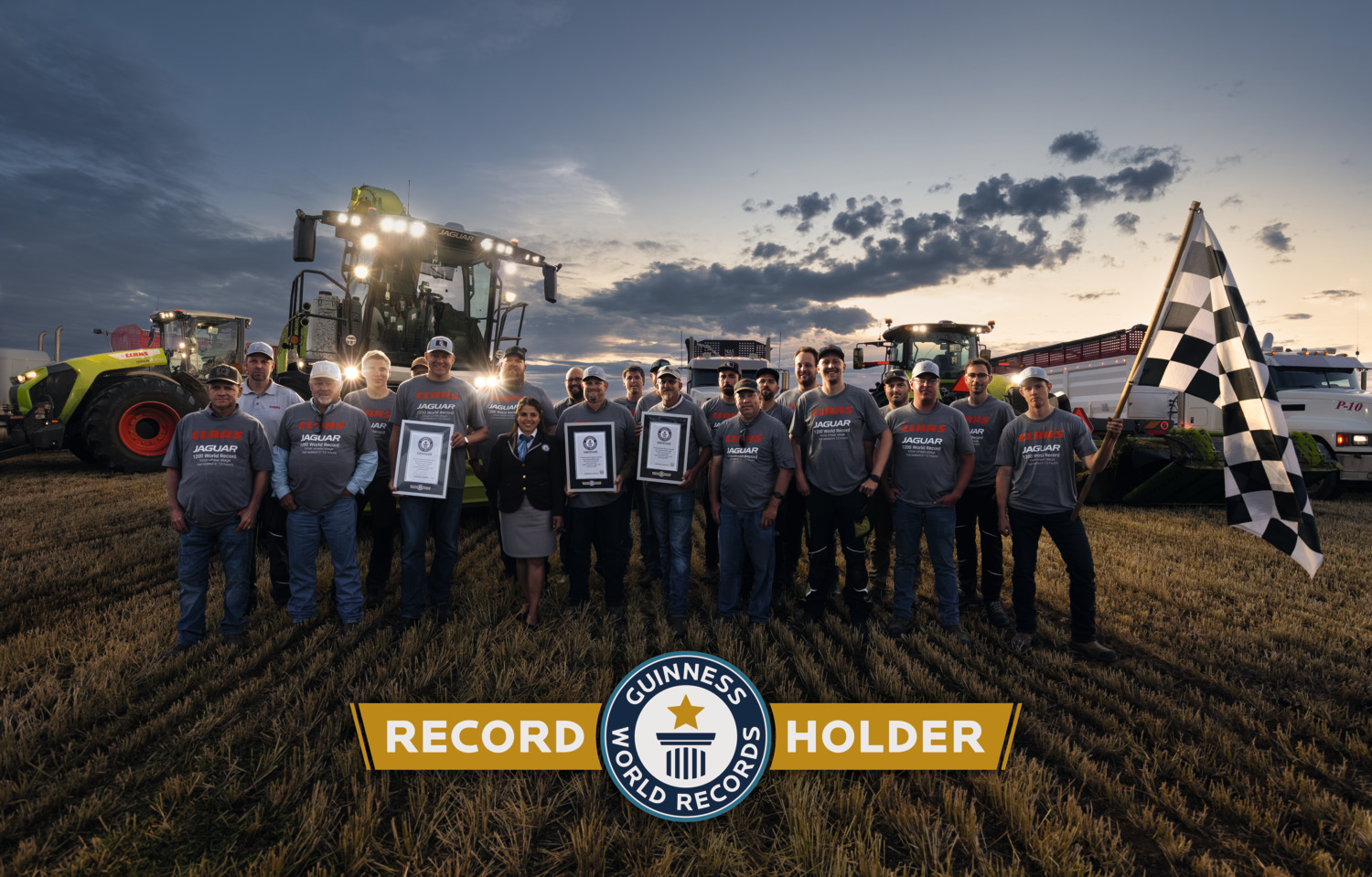 Jak wydajna jest nowa seria JAGUAR 1000? Na początku 2025 roku to pytanie zadało sobie trzech Amerykanów, którzy wpadli na odważny pomysł: jak nowa maszyna JAGUAR 1200 o mocy 1110 KM poradziłaby sobie ze zbiorem całych roślin pszenicy w ciągu 12 godzin pod pełnym obciążeniem? Wynik: imponujące 4096 ton – oraz wpis do księgi rekordów Guinnessa.