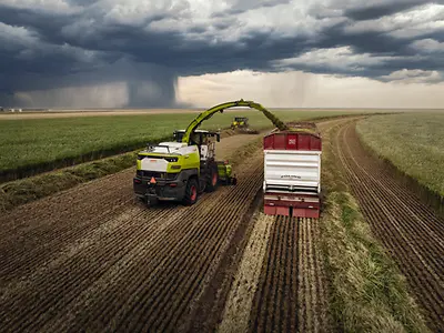 W ten czerwcowy poranek niebo nad północnym Teksasem było czyste. Lecz nad horyzont nadciągnęły ciemne chmury – to pora tornad. Podczas gdy inni woleli raczej zachować ostrożność, 39 nieustraszonych ludzi i ponad 30 ciężarówek udało się na bezprecedensowy pojedynek podczas żniw: łańcuch żniwny CLAAS trwał 12 godzin, a uczestniczące w nim maszyny: AXION 960 z DISCO 9700 RC AS oraz nowa sieczkarnia JAGUAR 1200 pracowały jak w zegarku. Rezultat: łącznie 4096 ton sieczki z całych roślin, co dało światowy rekord Guinnessa i dowiodło, że ta samojezdna sieczkarnia polowa nie zna granic.