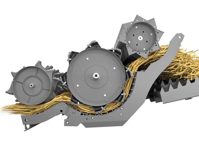 Liczne, sterowane zęby wnikają od góry w warstwę słomy i rozluźniają ją. Warstwa słomy staje się cienka, umożliwiając wcześniejsze efektywne oddzielanie pozostałego ziarna. Cała długość wytrząsacza wykorzystywana jest bardzo wydajnie z zachowaniem oryginalnej struktury słomy. Palce można przestawić tak, aby najlepiej dostosować je do konkretnych warunków oraz intensywności pracy.