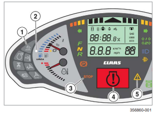 Kiedy prędkość ciągnika ponownie spada do normalnych wartości, następuje wyłączenie alarmu.