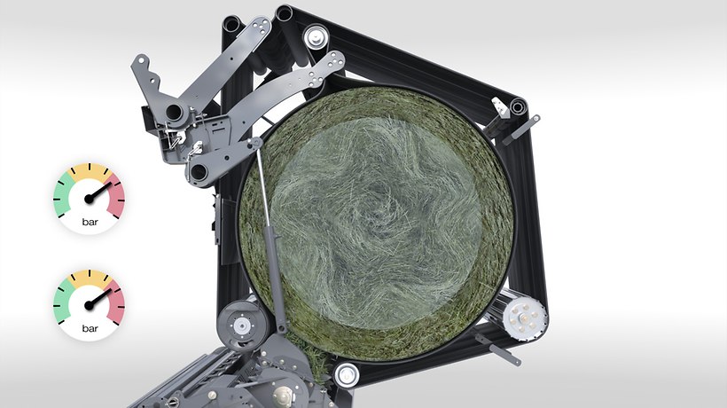 Przy zmniejszającej się rolce siatki sterowany hamulec siatki zwiększa automatycznie skuteczność hamowania, zapewniając w ten sposób równomierne naprężenie siatki aż do końca rolki. Oznacza to sprawne owijanie od pierwszego do ostatniego balotu. Regulowany wariator powoduje, że gumowa rolka obraca się wolniej, tym samym wyciągając siatkę