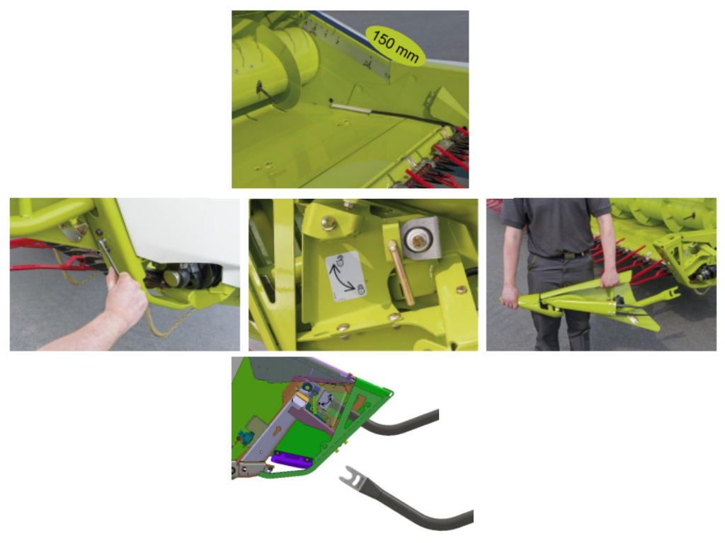 - 1. Wysunąć stół przyrządu żniwnego za pomocą przełącznika.