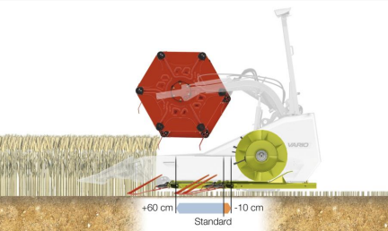 Przyrząd roboczy ma duży wpływ na wydajność kombajnu. Decydującym czynnikiem dla optymalnego przepływu materiału jest odległość pomiędzy listwą tnącą, a przenośnikiem ślimakowym. Odstęp pomiędzy listwą tnącą, a przenośnikiem ślimakowym można zmieniać bezstopniowo podczas jazdy, łącznie o 700 mm: 600 mm do przodu i 100 mm do tyłu oraz o 150 mm dla rzepaku.